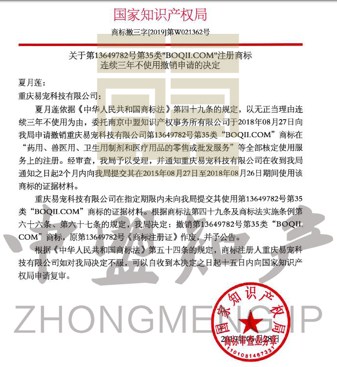 附2:商標(biāo)撤三決定書(shū)
