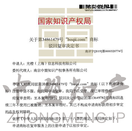 復(fù)審商標(biāo):BOQII.COM