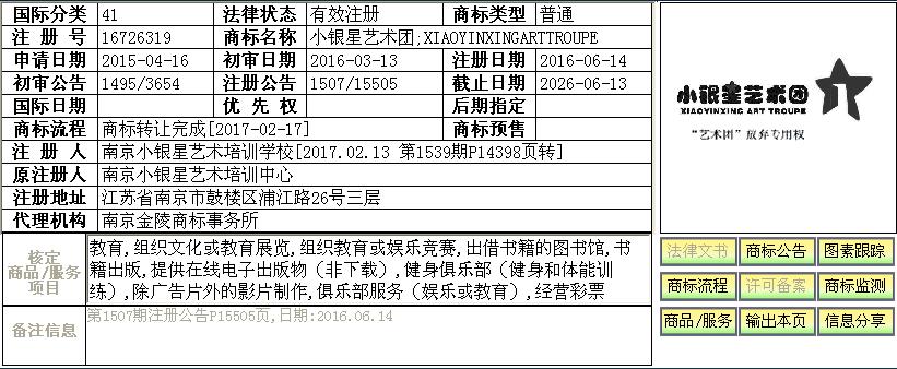 申請人:南京小銀星藝術(shù)培訓(xùn)學(xué)校